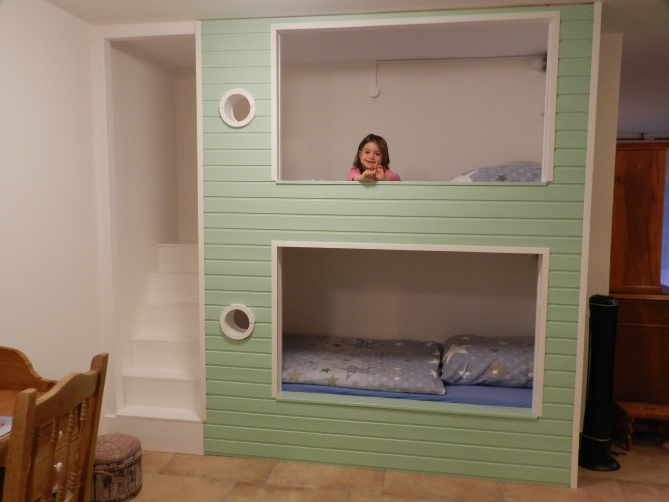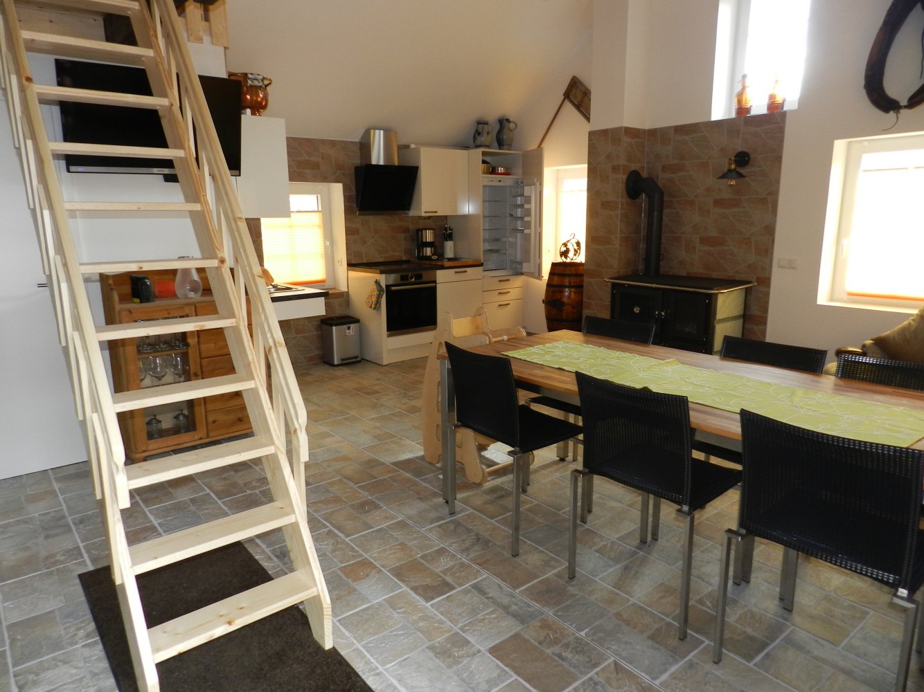 Unser Heidihaus, ein kleines Schmuckstück, mit viel Liebe und sehr aufwendig vollumfänglich renoviert und den heutigen Ansprüchen perfekt angepasst. Unser Heidihaus verfügt über 2 Ebenen und umfasst rund 68qm. Im Parterre ist es vollumfänglich rollstuhlgerecht eingerichtet. Die Nasszelle mit WC, Lavabo und Dusche ist ebenso optimiert, wie die hochmoderne Küche mit Backofen, Kochfeld, Geschirrspüler und gemischtem Kühlschrank. Darüber hinaus verfügt es über einen wunderschönen Holzofen, auf dem man auch kochen kann. Seinen Namen Heidihaus trägt es aufgrund seiner zweiten Ebene, die speziell auch für die Kiddies nur über eine Leiter zugänglich ist und über das kleine Fenster von Sonne und Mond beschienen wird.