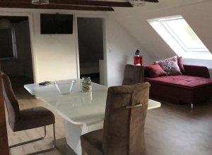 Unsere Otto-Wohnung, die charmante Dachwohnung im Lisahaus, ist nur über eine Treppe erreichbar und somit nicht rollstuhlgängig. Sie verfügt über eine kleine Küchenzeile, ein kleines Badezimmer mit Dusche und WC sowie zwei Schlafzimmer.